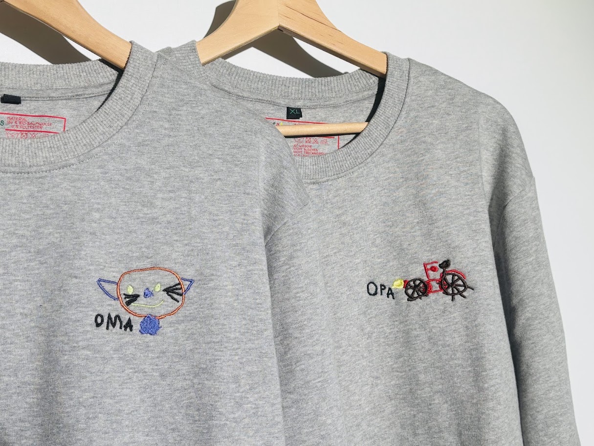 Wir sticken oder bedrucken Zeichnungen auf Beanies, Shirts & Co. – als persönliche Geschenke oder Erinnerungen zum Anziehen. Jedes Teil ist ein Unikat mit ♥️, direkt aus München.